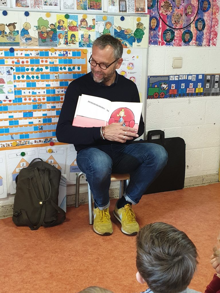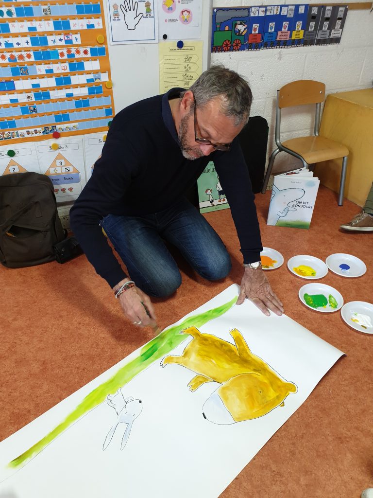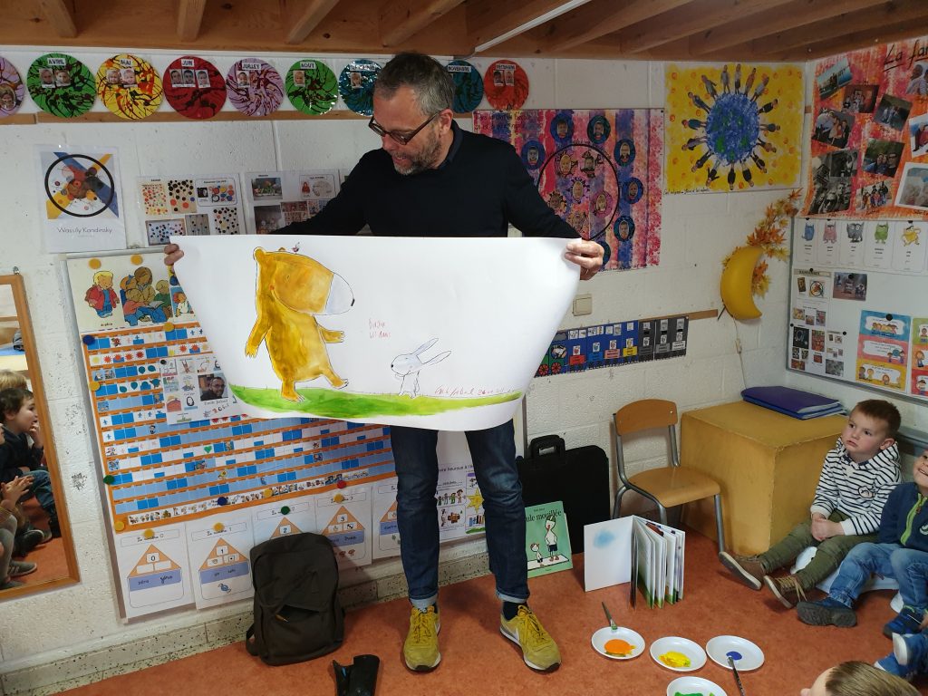 Bienvenue à Emile Jadoul, auteur d’albums jeunesse, dans nos classes et merci à lui pour son professionnalisme et sa simplicité auprès des enfants.