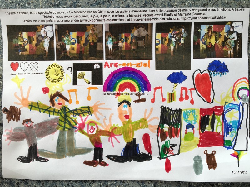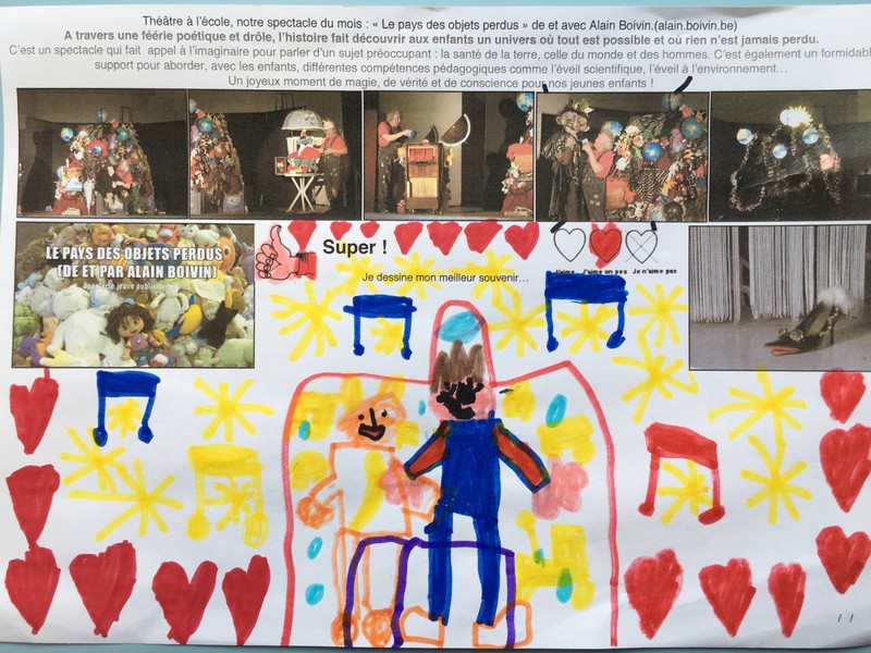 La découverte de ces spectacles est toujours suivie d’un partage et de l’expression de l’enfant, verbal et sur feuille, pour garder une trace, et rendre l’enfant critique(dans le bon sens).